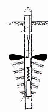 Recuperatoare pasive de hidrocarburi din apele subterane. Echipamentul suspendat cu un cablu este lansat în foaj ?i pozi?ionat la nivelul interfe?ei ap?/hidorcarburi. Flotorul este montat liber pe ax astfel încât varia?iile de nivel ale apelor subterane pot fi urm?rite pe un ecart de 0,35 m. DIFERITE VARIANTE, SCHEME, TIPURI DE MONTAJ. |